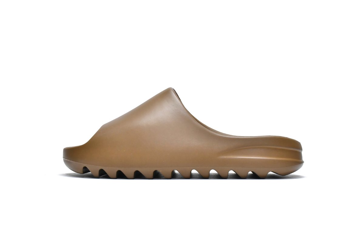 The Replica Yeezy Slide CORE uses brown as the main tone and has a simple design, continuing the consistent style of the Yeezy Slide series. The overall shape is round and thick, the wide upper structure with open toes, the rubber midsole is equipped with a sawtooth outsole, and the thick sole gives people a very comfortable feeling.